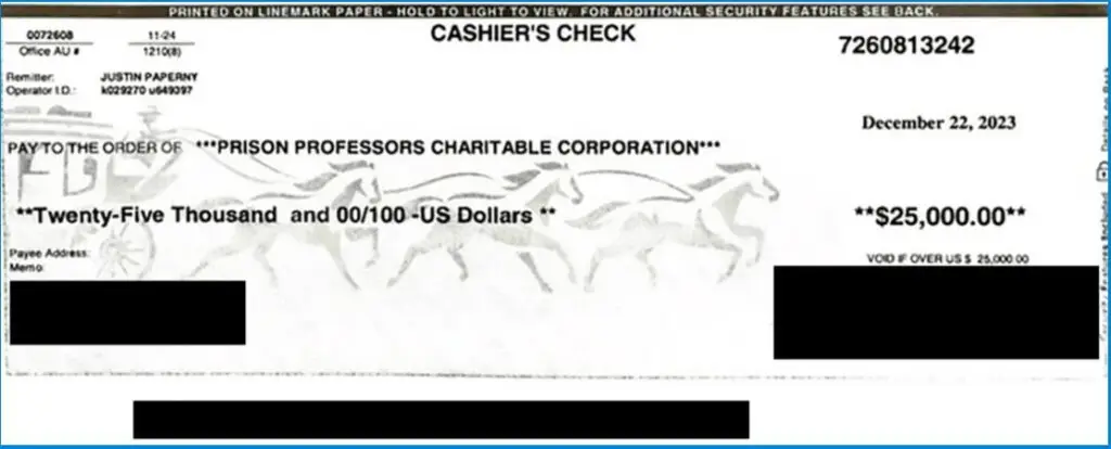 As the above check shows, White Collar Advice and I have been sponsoring the Prison Professors Charitable Corporation and its mission since even before Michael completed his prison term, in 2013. It led to numerous other people sponsoring the mission, including Changpeng Zhao “CZ,” the founder of Binance. Don’t take my word for it. You can read the endorsement that CZ authorized us to use in all the books and courses we distribute.