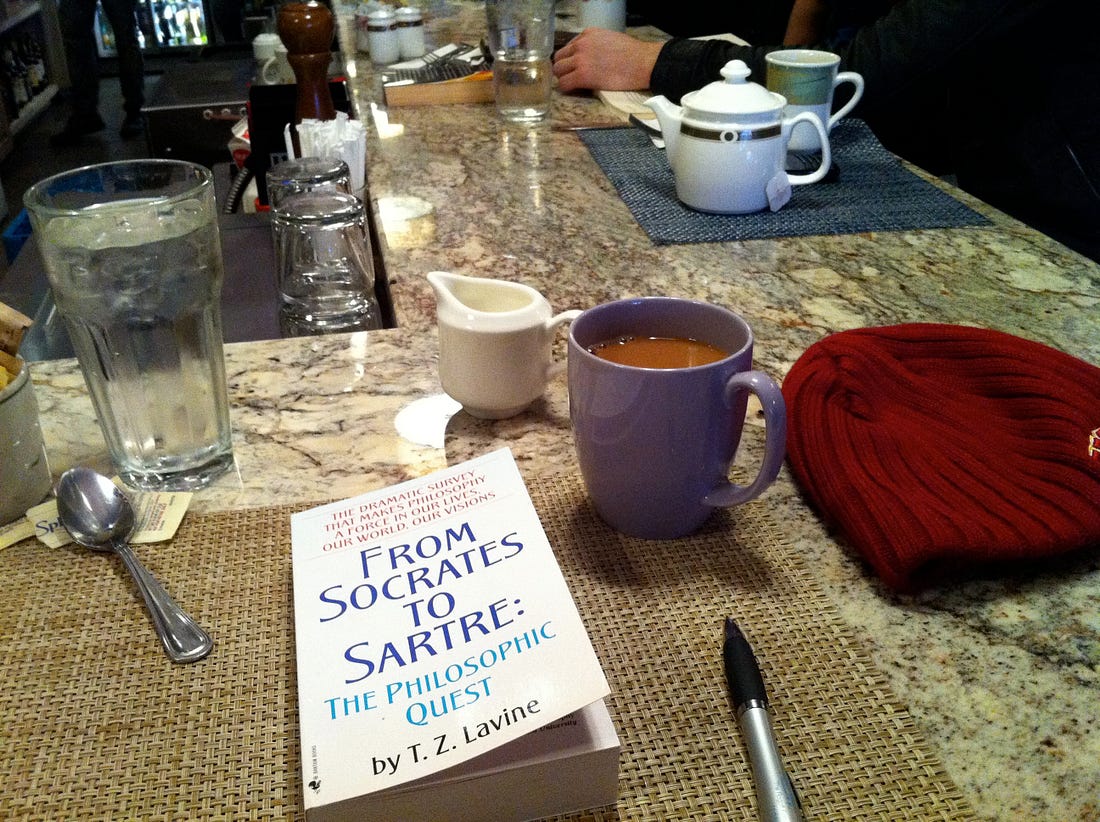 As I considered the question, I noticed I was holding a book in my hand, From Socrates to Sartre: The Philosophic Quest, some philosophy book I’d picked up after running ten miles through New York City.