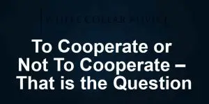 TO COOPERATE OR NOT TO COOPERATE – THAT IS THE QUESTION You are under investigation for a white collar crime, and are