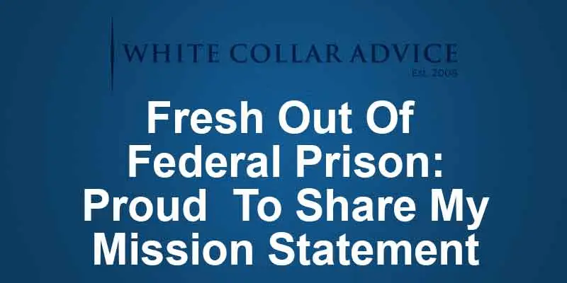 Fresh Out Of Federal Prison: Proud To Share My Mission Statement